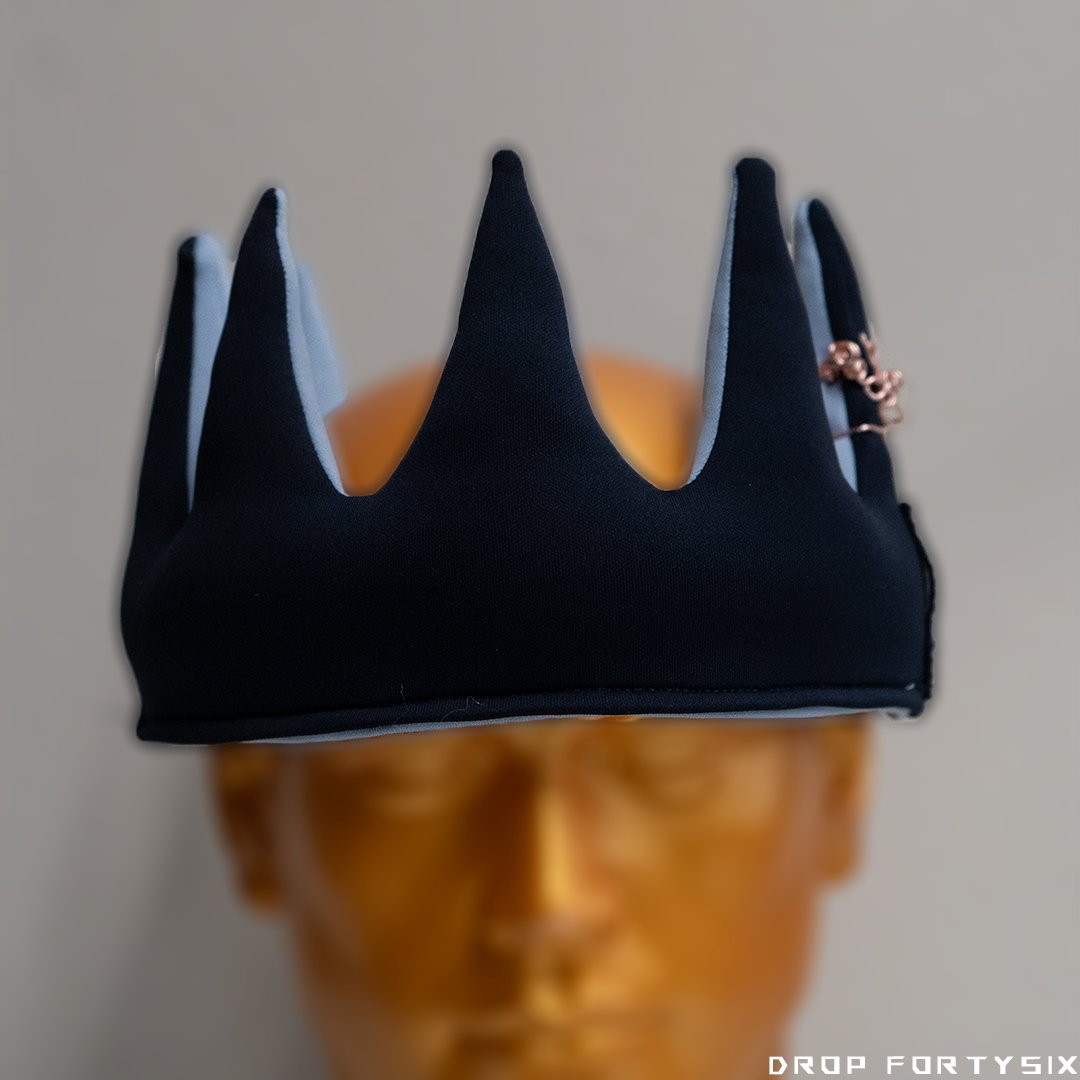 Reversible Puff crown made from Medium weight Scuba-Knit fabric. Stuffed with poly-fil. As customary, this crown has mini stash pockets inside of the tags. In addition to that, it comes with a crown charm, twisted from silver plated copper wire, perfect for hanging more wires from it.