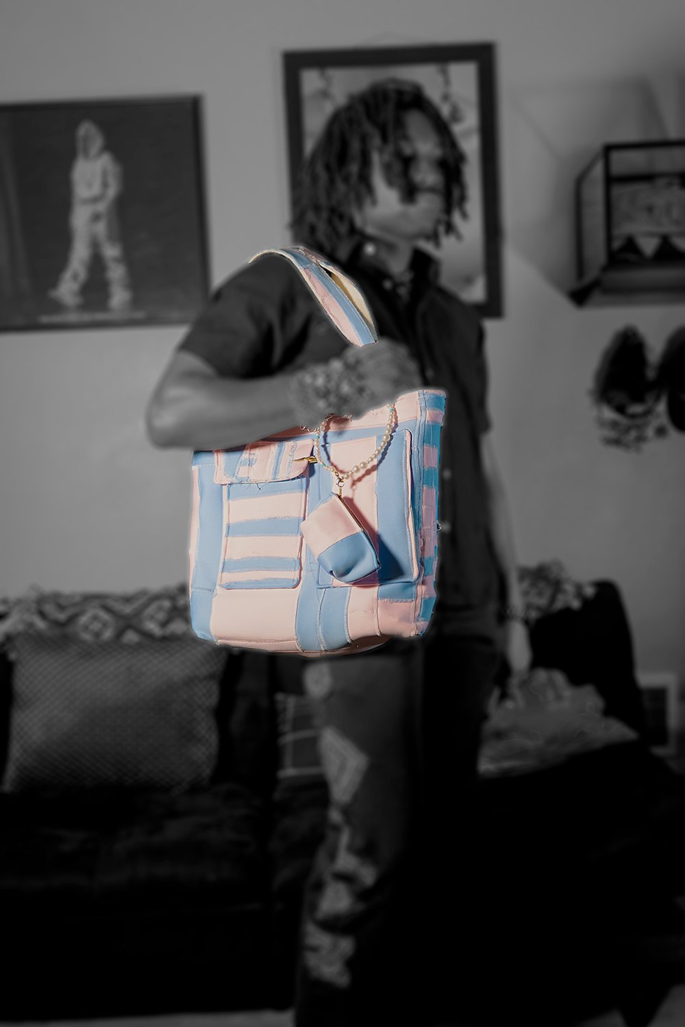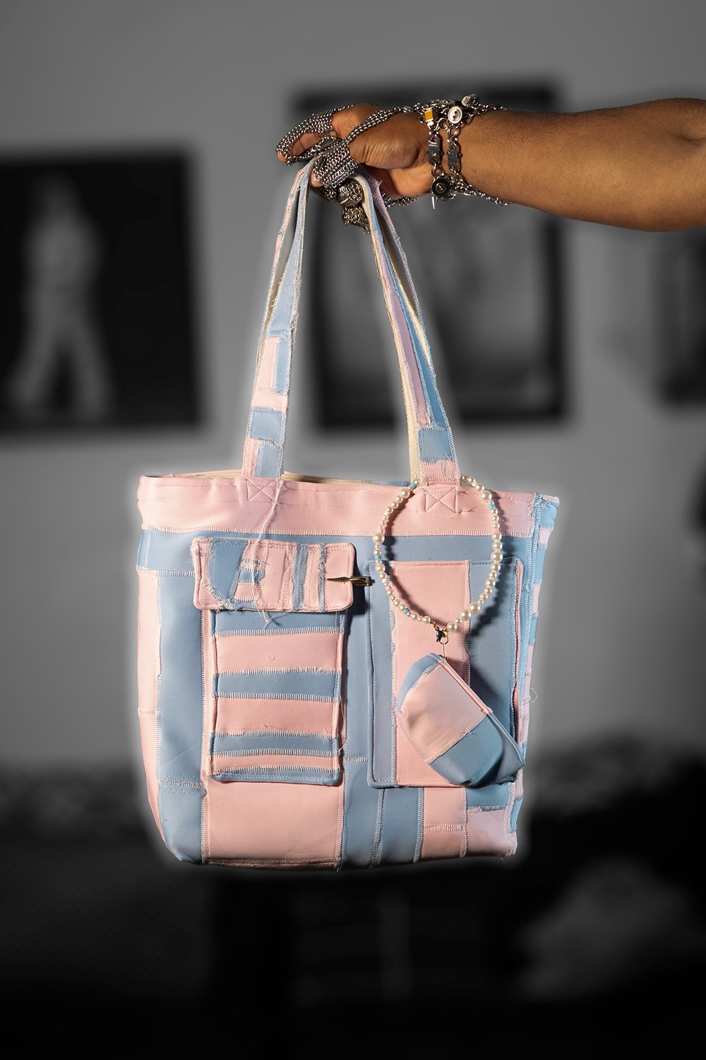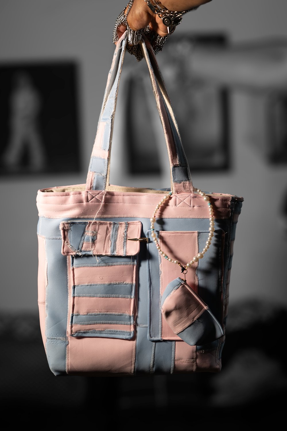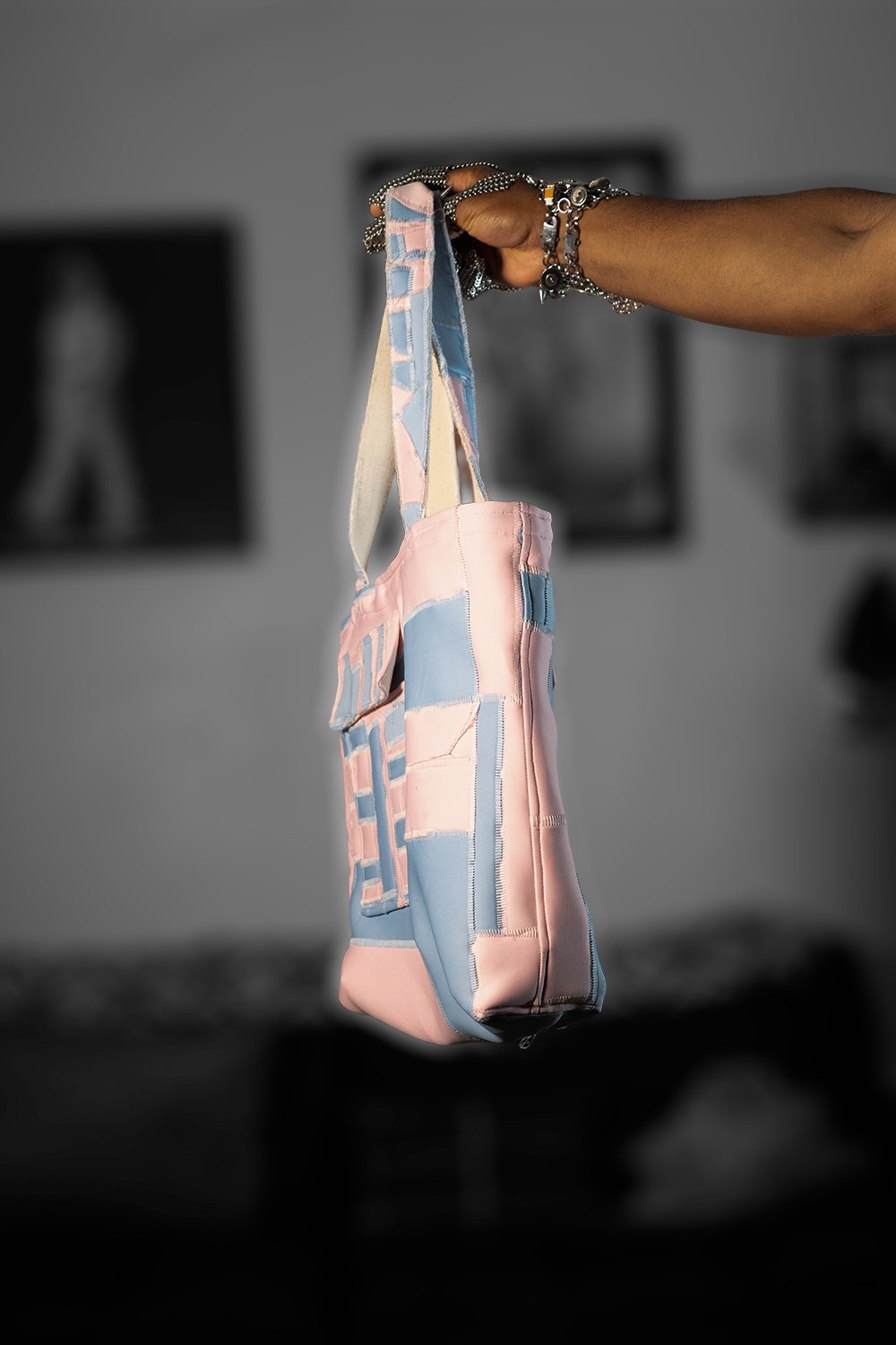 Pink + Blue Tote bag made from the scraps of the "The Rush' mini collection debuted at Folklife Festival in May 2025.